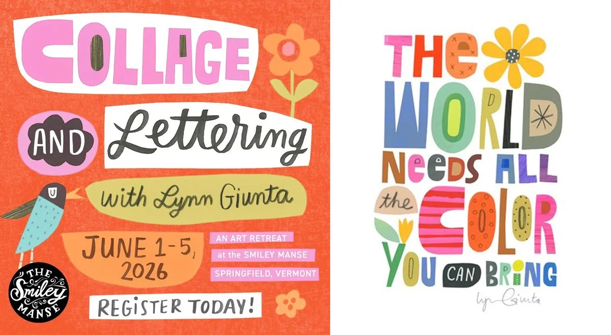 Come join me (Lynn) as you jump into the world of lettering and collage! We can all be kids again, creating art and finding happiness at our kitchen table. No experience necessary—just bring your willingness to play and discover magic!