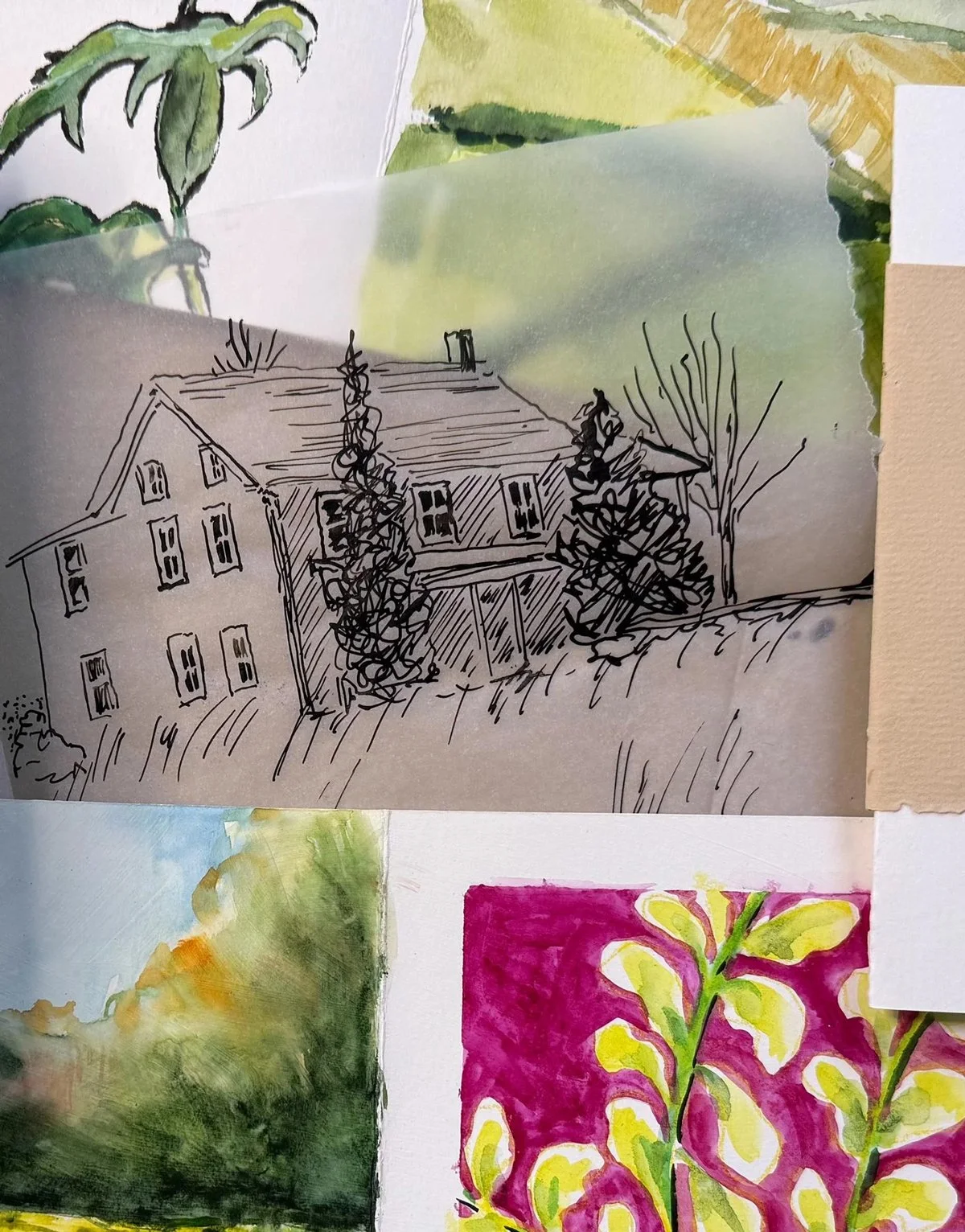 Wild Pages is a four-day immersive art retreat where painting, memory, and handmade books come together. Through layered work in watercolor, gouache, ink, and simple printmaking, you’ll create a series of expressive pages inspired by place, home, and your own visual storytelling.